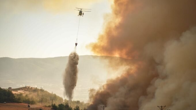 Gece boyunca karadan arazöz ve iş makineleri ile müdahaleye sabah saatlerinde havalanan çok sayıda helikopter ve uçak da destek veriyor.
