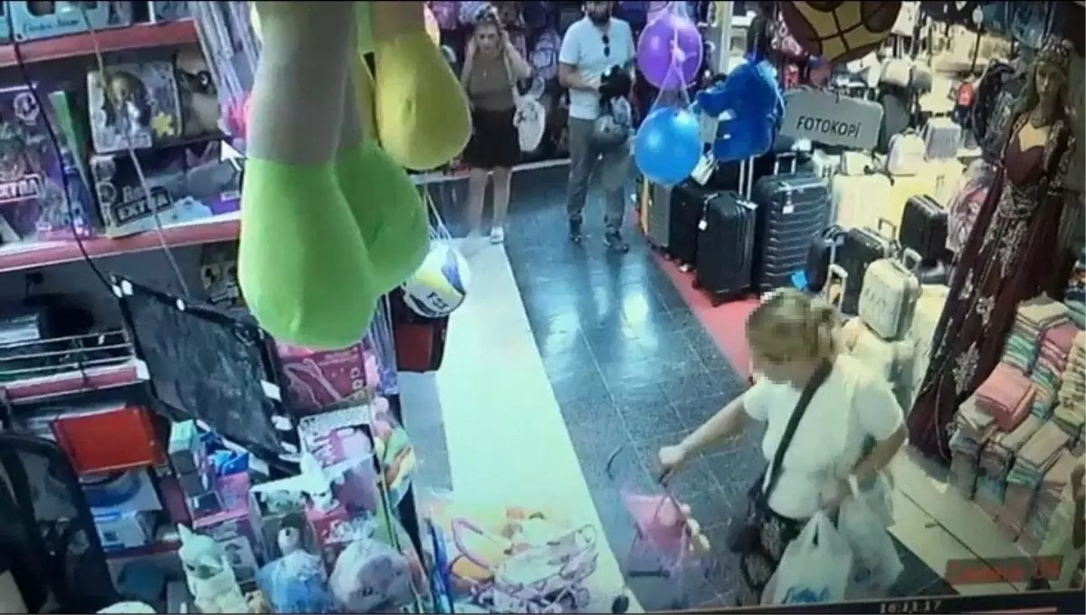 Olay, Efeler ilçesi Doğu Gazi Bulvarı Vardar iş hanında yaşandı. Dükkanını kızına emanet edip giden Fatih Cem Akça (43), kapanış saatine yakın iş yerine geri döndü. Akça, malzemeleri içeri alırken bebek arabalı bir oyuncağın eksik olduğunu fark etti. Dükkandan ayrıldığı saatten itibaren kameraları inceleyen Akça, bir kadının, iş yerinin önünden geçerken oyuncağı aldığını, kasiyer kızın fark etmemesi için kutuların arkasına sakladığını fark etti. Kameraları fark etmeyen kadının, 10 TL’lik alışveriş yaptığı görüldü. Kadın, daha sonra kutuların arkasında bulunan oyuncağı çocuğunun eline verip uzaklaştı. Kamera kayıtlarını alan Fatih Cem Akça ise polise şikayette bulundu. Polis şüphelinin yakalanması için çalışma başlattı. İş yeri sahibi Akça, “Oyuncağın fiyatı 700 liraydı. Dikkat çekmemek için de kızımdan 10 liralık alışveriş yapmış” dedi.
