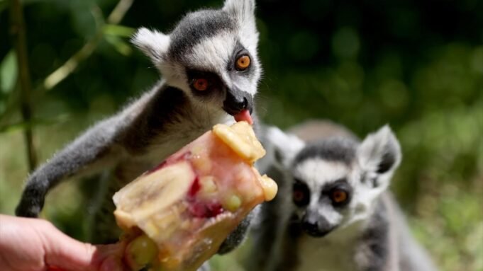 Lemur, maymun ve ayı gibi hayvanların, karpuz, portakal, kiraz, muz, elma gibi meyvelerden oluşan buzlu kokteyllerle beslendiği anlar, ziyaretçilerin de ilgisini çekiyor. Yavruyken doğal yaşam parkına bırakılan “Venüs” isimli rakun da kendisine verilen buzlu meyveli dondurmayla sıcak havanın etkisinden kurtulmaya çalışıyor.