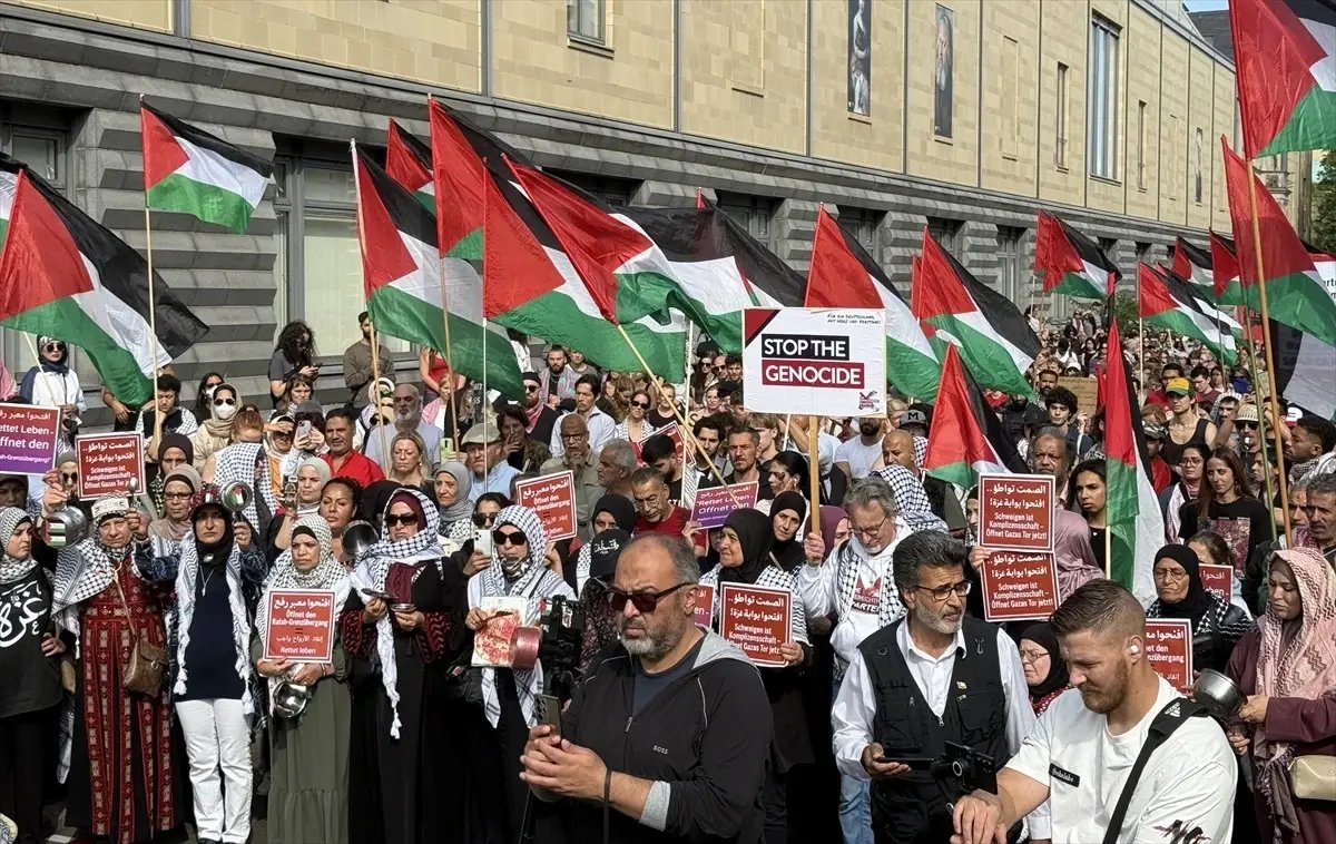 İsrail aleyhine sloganların atıldığı gösteride yapılan konuşmalarda, Almanya ve uluslararası topluma Gazze’de dayanılmaz seviyeye ulaşan açlık krizine karşı harekete geçme çağrısında bulunuldu.