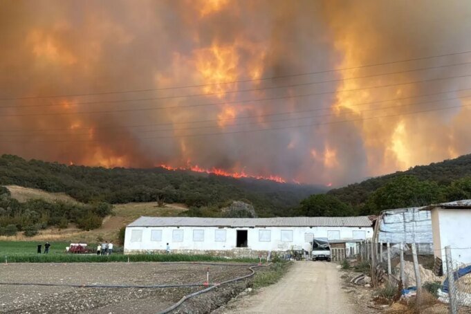 Alevlerle amansız mücadele eden ekiplere köylüler de destek olurken, ormana yakın olan tavuk ve hayvan çiftliğine doğru ilerlemesi, herkesi tedirgin etti.