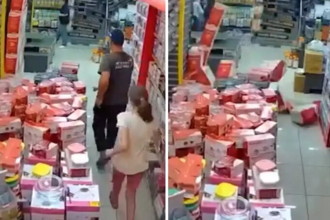 Öte yandan deprem nedeniyle bazı binalar yıkılırken; deprem anına ilişkin görüntüler de ortaya çıktı. Kameralara yansıya görüntülerde bir markette vatandaşların panikle dışarıya kaçtığı görülüyor.