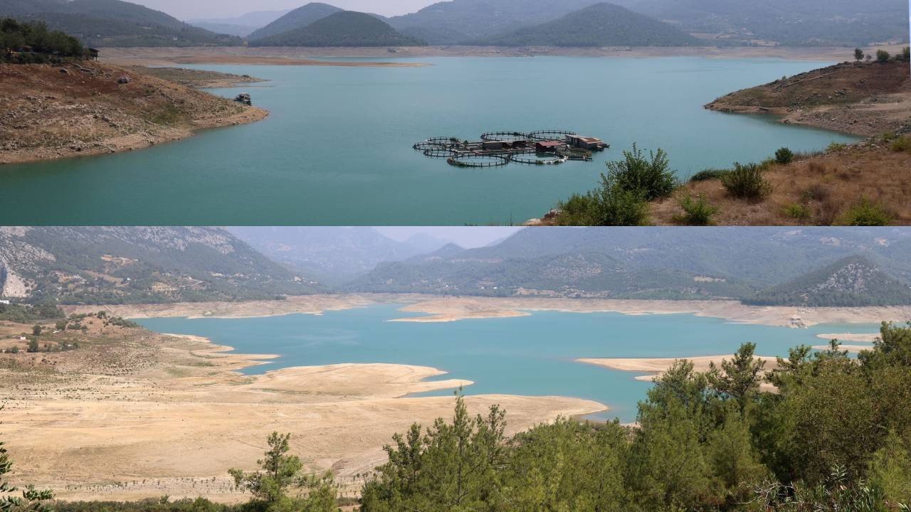 Kozan Barajı’nda su seviyesi krtik seviyeye düşerken, havadan çekilen görüntüler suyun korkutucu boyutta çekildiğini bir kez daha gözler önüne serdi. Normal şartlarda Devlet Su İşleri (DSİ) kanalları aracılığıyla çiftçilere 4 kez verilmesi planlanan su da kuraklık nedeniyle bir kez verilebildi. Sulama yapılmayan bahçelerdeki ağaçlar ise susuzluk nedeniyle kurumaya başladı.