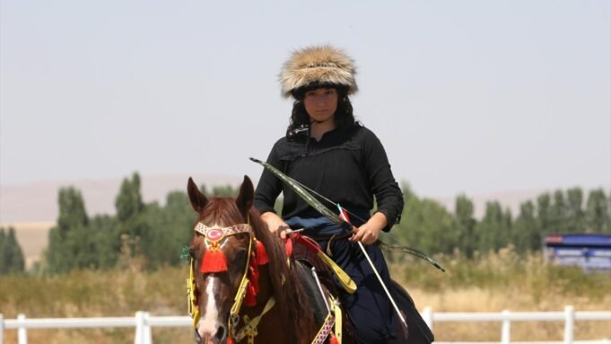 Muş’un Malazgirt ilçesinde, Malazgirt Zaferi’nin 954. yıl dönümü kutlamaları kapsamındaki atlı okçuluk yarışmasına katılan kadın okçular, Selçuklu ruhunu yansıtmak için hünerlerini sergiledi.