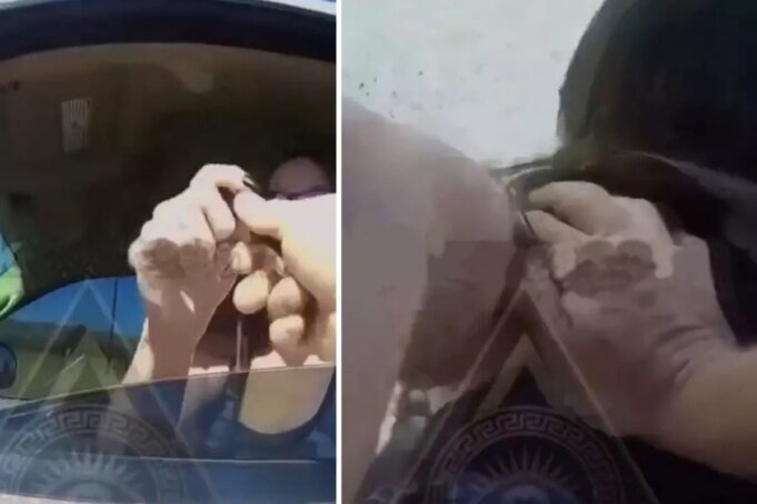 Olay, kimliği açıklanmayan bir kadın sürücünün kendisine ceza yazan polisle sözlü tartışmaya girmesiyle başladı. Tartışma sırasında kadın, elindeki kalemi polis memuruna doğru fırlattı. Bunun üzerine polis, saniyeler içinde müdahalede bulunarak kadını aracından indirdi, yere yatırdı ve ters kelepçeyle gözaltına aldı.