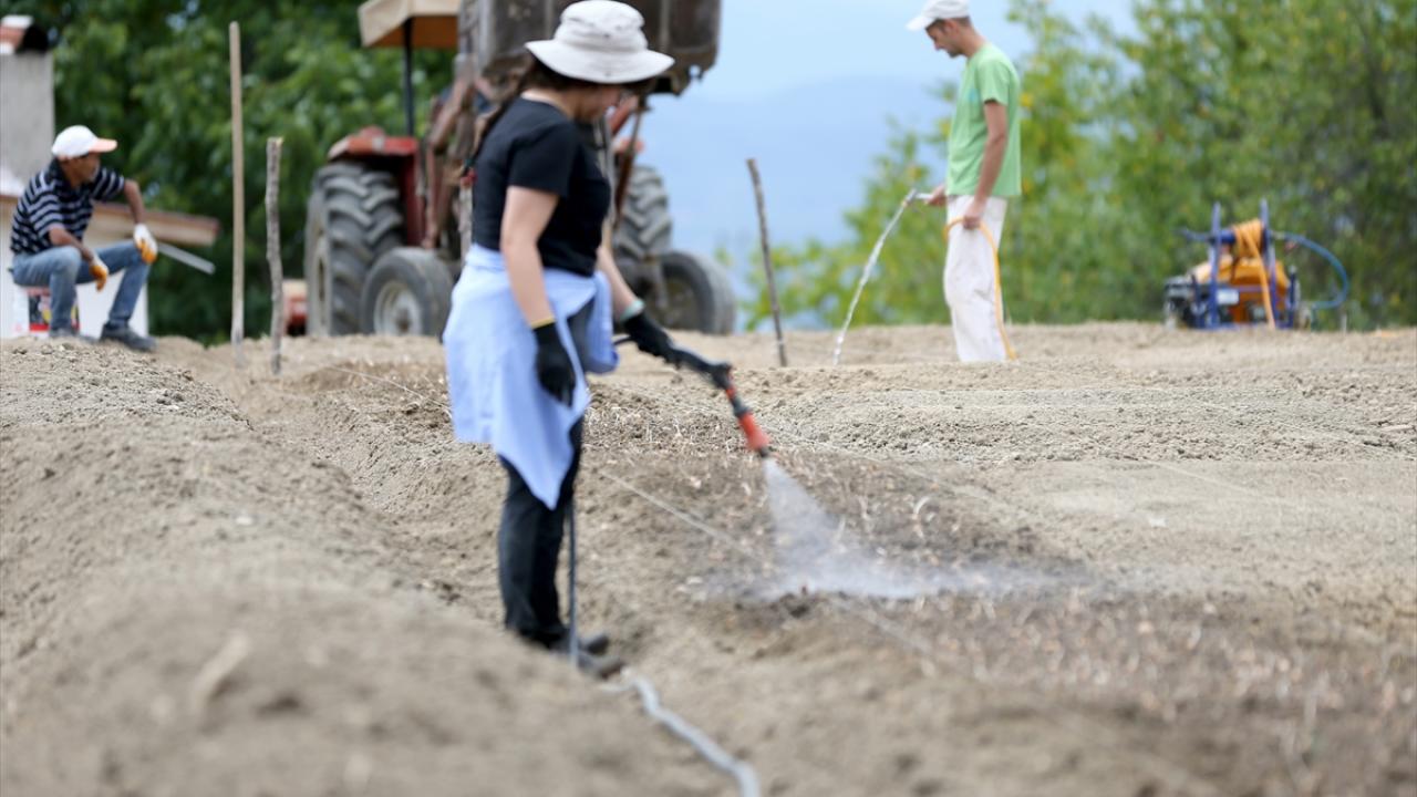 Safran soğanlarının dikimi için iklim koşullarına bağlı olarak toprağın hazırlandığını aktaran Yılmaz, “Toprak sürülür. Gübrelemeler yapılır. Daha sonra yumrularımızı yere oturtacak şekilde 15`er santimetre arayla dikeriz. Son olarak iki yandan küreklerle karık sistemi ile toprağı kapatırız.” diye konuştu.