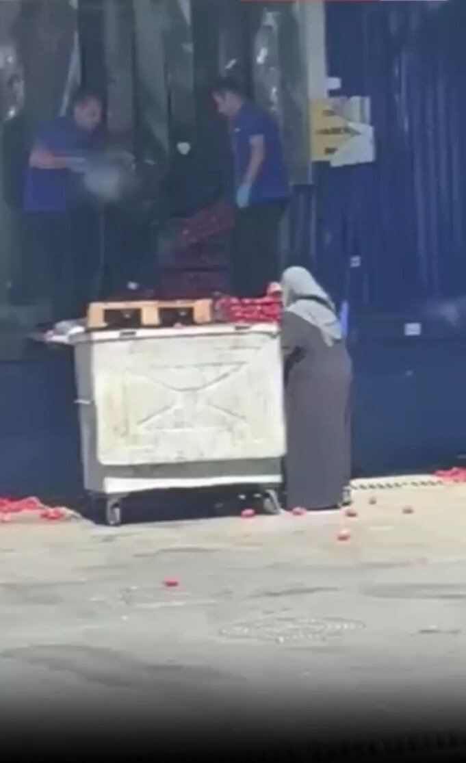 Öte yandan, olayın yaşandığı esnada çevrede bulunan bir vatandaşın çöpe atılan domatesleri almaya çalıştığı görüldü.