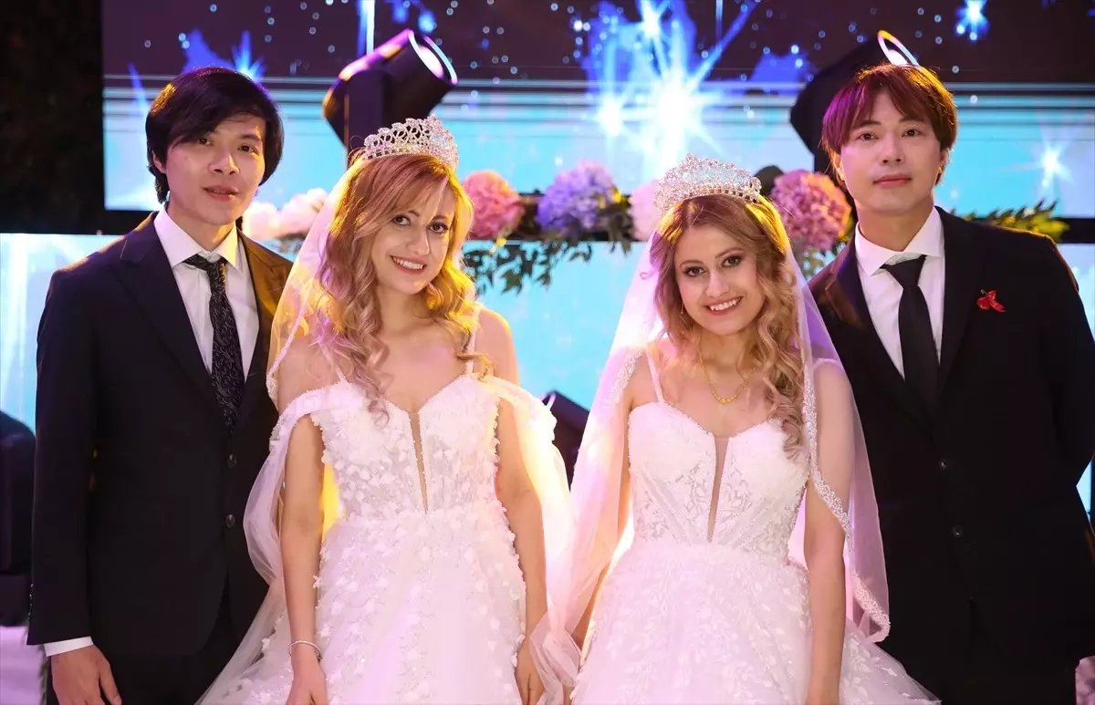 Tek yumurta ikizleri Nagehan ve Neslihan Kılavuz, kentteki bir düğün salonunda düzenlenen törenle Tayvanlı Hajun Hong ve YuFan Shih ile evlendi.