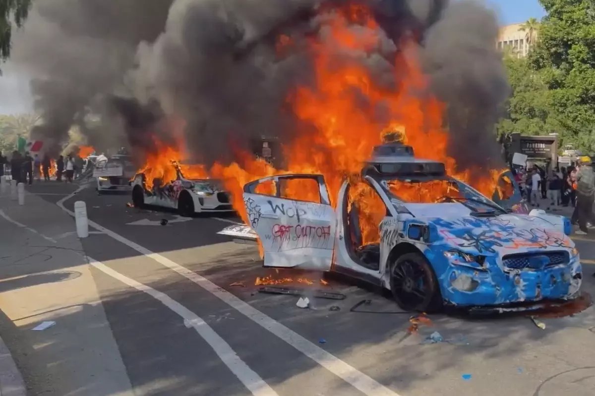 Sokaklara dökülen protestocular sıra dışı bir yönteme başvurdu. Sürücüsüz çalışan otonom araçları çağıran eylemciler, bu araçları kullanılamaz hale getirdi. Görüntülerde, alevler içinde kalan araçlar ve yükselen dumanlar adeta bilim kurgu filmlerini andırdı.