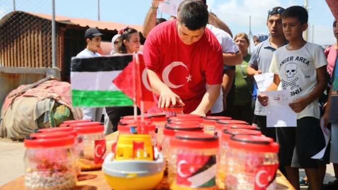 Adana’da Down sendromlu ve otizmli çocuklar, İsrail’in saldırılarının sürdüğü Gazze’deki akranları için yazdıkları mektupları ve gıda malzemelerini şişelere koyarak denize bıraktı.