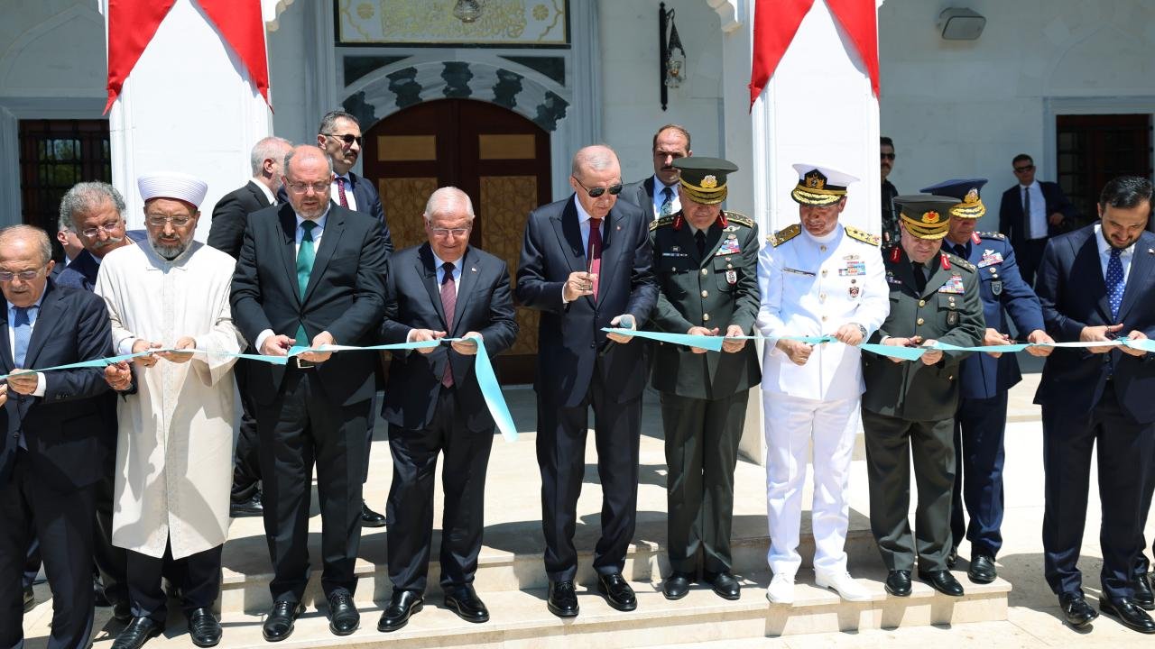 Açılış töreninin ardından kurmay subayların mezuniyet törenine iştirak edeceklerini aktaran Erdoğan, “Bugün Milli Savunma Üniversitemizde ve bağlı birimlerinde yapımı tamamlanan 6 yeni camimizi ibadete açıyoruz.” ifadelerini kullandı.