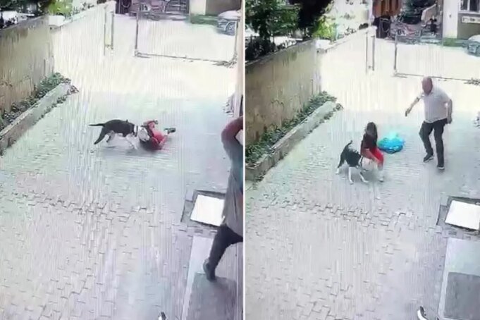 Ataşehir’de pitbull cinsi bir köpek, sokakta arkadaşıyla oynayan bir çocuğa saldırdı. Köpeğin saldırısına uğrayan çocuk, çevredeki vatandaşlar tarafından kurtarılırken, o anlar güvenlik kamerasına yansıdı.
