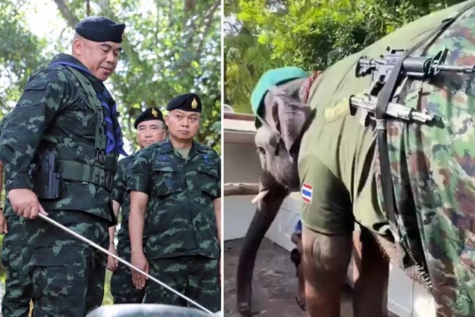 Savaştan ilginç görüntüler geldi. Tayland ordusu, Kamboçya sınırına fil konuşlandırdı. File askeri üniforma giydirildiği, üzerine uzun namlulu silah takıldığı görüldü.