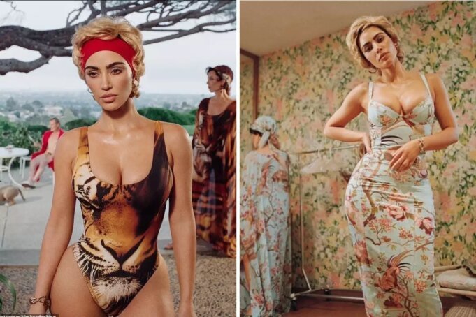 44 yaşındaki reality yıldızı, kampanyada sarışın ve kıvırcık kısa saçlı yeni imajıyla adeta bambaşka biri gibi görünüyor. Derin dekolteli, kaplan desenli mayo giyen Kim Kardashian, kırmızı saç bandı ve altın aksesuarlarla tarzını tamamladı. Çekimler doğayla iç içe açık alanlarda yapılırken, kampanyada 69 yaşındaki annesi Kris Jenner da yer aldı.