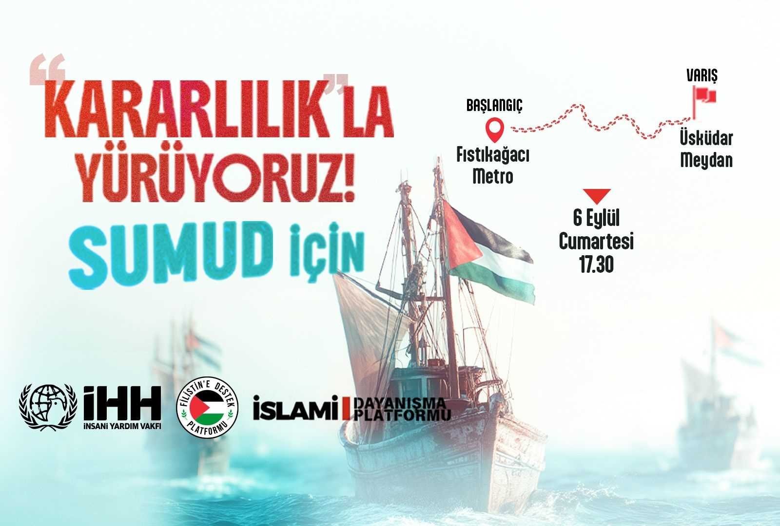 İHH İnsani Yardım Vakfı, İslami Dayanışma Platformu ve Filistin’e Destek Platformu tarafından Sumud Filosu’na destek vermek amacıyla Cumartesi günü Üsküdar’da yürüyüş düzenlenecek. Yürüyüş, saat 17.30’da Fıstıkağacı Metro Durağı önünden başlayacak.